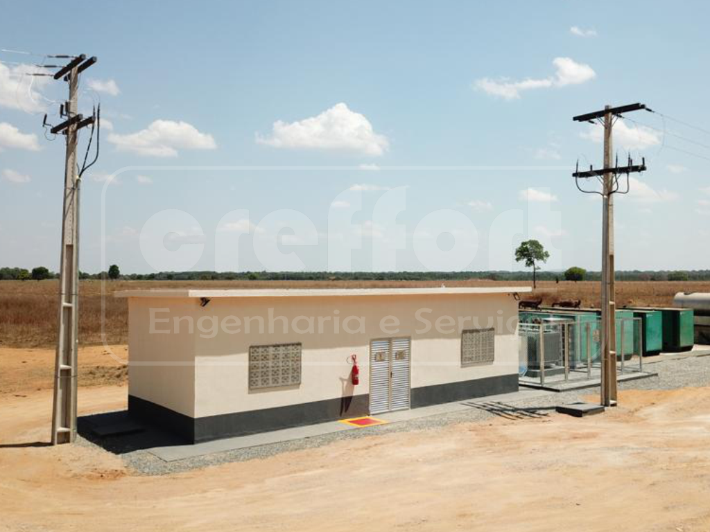 Execução de subestação de entrada de energia para uma carga de 2995kVA e uma subestação elevadora alimentada por um grupo gerador de 1500kVA, para atender uma planta industrial e um confinamento na Fazenda Talismã. A Subestação de Entrada de Energia é do tipo cubículo blindado com proteção por disjuntor de média tensão comandado por relé microprocessado, com as funções 50/51, 50N/51N, 27, 47 E 59 parametrizadas. A entrada e saída do cubículo ocorre de forma subterrânea dentro das normas ABNT. Foi executada, também, uma rede interna particular para atender todos os pontos de carga.