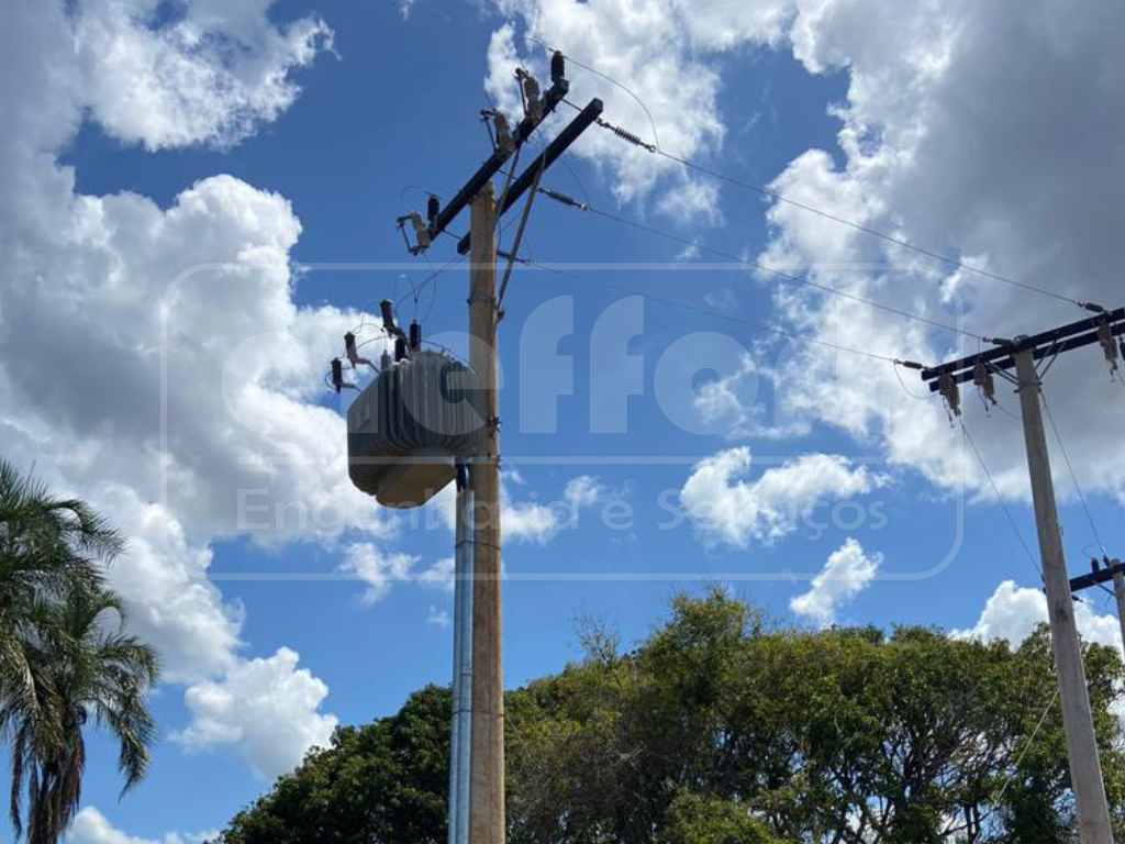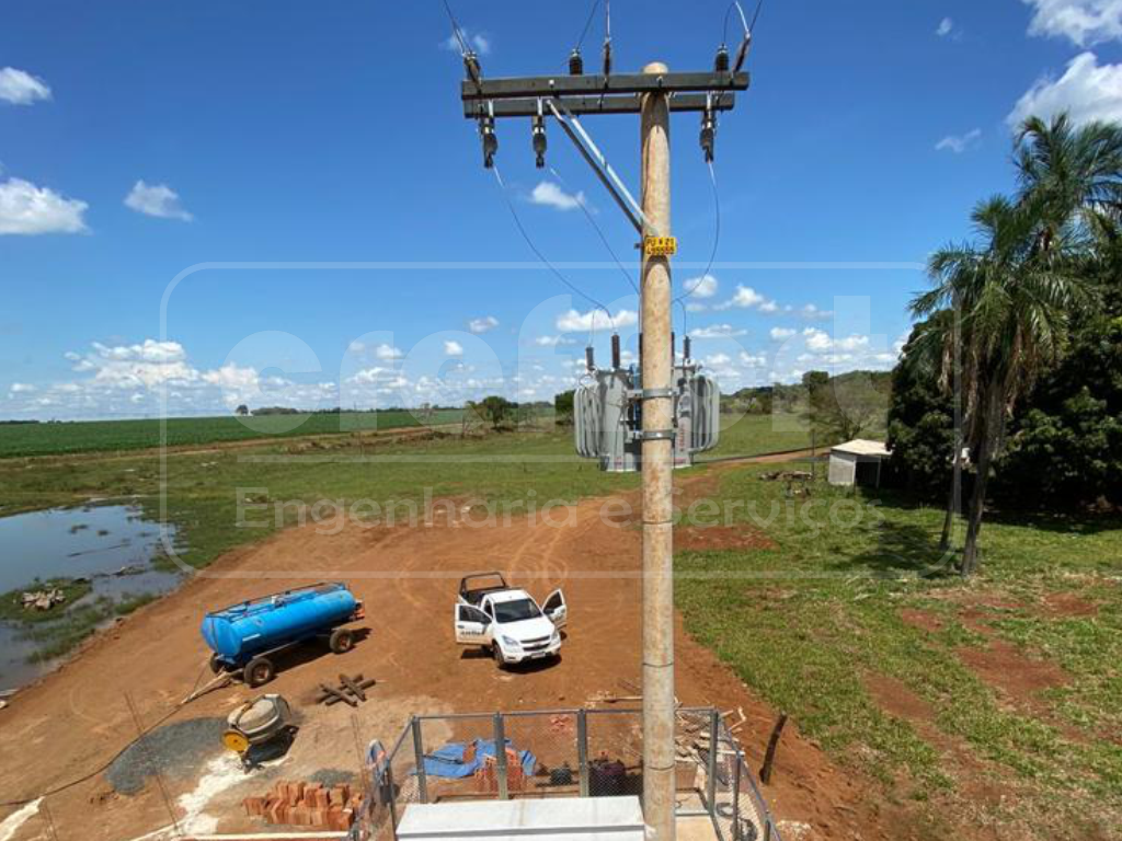 Projeto e execução de subestação de energia, em estrutura simplificada, com um transformador de 300kVA, para atender um sistema de irrigação na Fazenda Velha. Foi projetado e executado a montagem eletromecânica, bem como o dimensionamento da proteção em média tensão (chave fusível) e a respectiva malha de aterramento. Foi realizado também, o projeto e a execução da conexão, com uma extensão de 300 metros.
